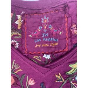 Johnny Was V Neck Burgundy Embroidered Floral Long Sleeve Tshirt Large
