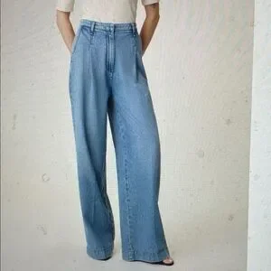 Rag&bone Aurora wide leg Blue Women's pleated trouser Jeans- nwt
