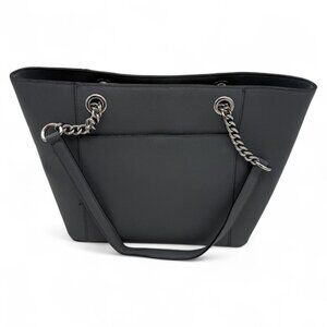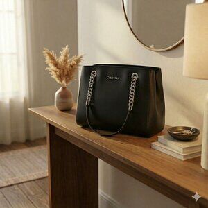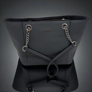 Calvin Klein Black Leather Tote Bag With Chain Straps & Magnetic Closures