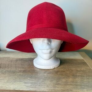 JERRY YATES Vintage Cherry Red Felt Hat Fedora Bowler Brim 50’s 40’s Mod Retro