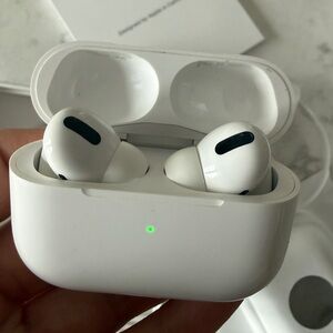 AirPods Pro with MagSafe charging Case. Used but like new. Works well. Needs a lightning cable to charge if not using MagSafe. Comes with original box and all ear tips. Instruction packet also included.No charging wire available.