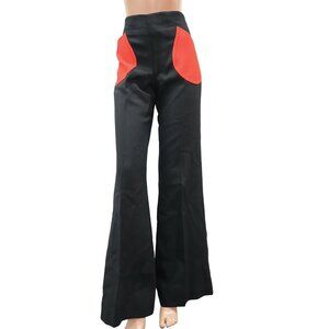 Ignite your style with these show-stopping black flare pants, featuring bold orange patch pockets for a striking contrast and an undeniable retro flair.