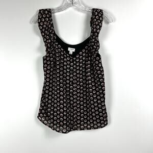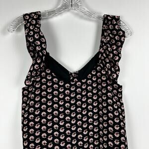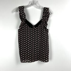 J Crew Ruffle Sleeveless Button Front Floral Black Blouse Coquette Womens Size 0