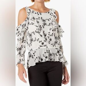 JOIE Carlyton Floral-Eyelet Cold-Shoulder Silk Top- Size Small