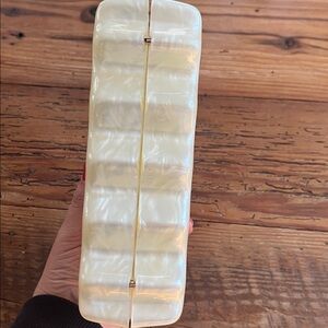 Cult Gaia's Paloma Clutch is a sculptural accessory crafted from marbled acrylic with a ridged border. Pair it with a sleek evening gown to highlight its artistic design.