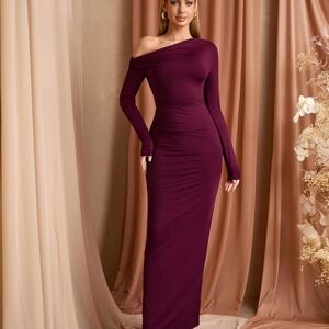 Women's Long Sleeve Bodycon Maxi Dress One Shoulder Ruched Fall Formal Wedding G