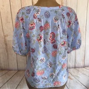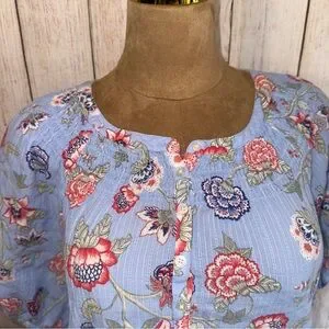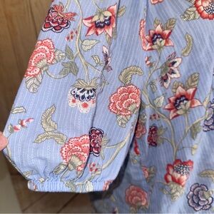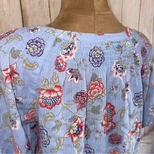LOFT Blue Floral Blouse, lightweight, eyelet detail, elastic sleeve, women’s XL