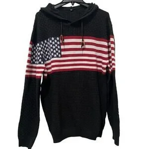 Men’s American Flag Hoodie Pullover Sweater Black NWOT Size XL
