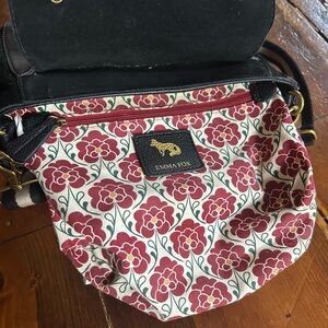 Emma Fox Dales crossbody handbag in black leather is a must-have for any fashion-forward woman. The pebbled finish and floral pattern on the exterior give it a bohemian vibe, while the top handle and stripe-colored detachable strap add a touch of sophistication. This medium-sized saddle bag features a turn lock closure and brass hardware, with inner pockets and a lined interior for practicality. The adjustable strap has a drop of 22 inches, making it a comfortable fit for any occasion. The Emma Fox Dales handbag is the perfect accessory for a casual day out or a night on the town.