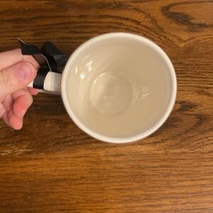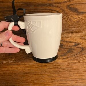 Rae Dunn ceramic mug with Nightmare Before Christmas theme. Classic black and white design. Double-sided. Gold rim. Dishwasher safe.