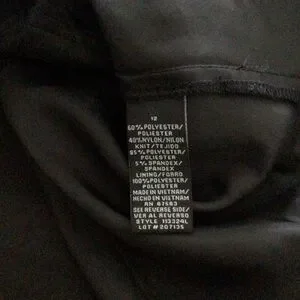 Dress Barn Collection red and black formal v-neck dress. Size 12. This dress has a ruched middle as well as ruched sleeves. The bottom has a black velvet pattern with sparkle. Fully lined skirt. This dress zips in the back. Made of a polyester/nylon/spandex blend. The lining is 100% polyester. Great pre-owned condition. No rips, holes or stains. Smoke free home.