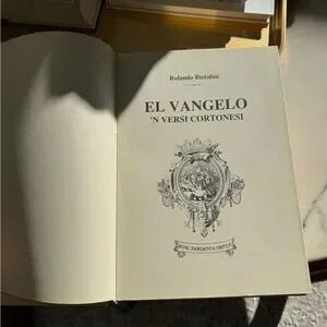 A refined example of contemporary Italian fine-press publishing, El Vangelo ’n Versi Cortonesi is a poetic interpretation of the Gospel rendered in the historic Cortonese dialect by Tuscan author Rolando Bietolini.