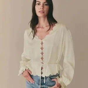 Mother of Pearl silk Elayne blouse from Doên. Features a delicate design. Worn once, no signs of wear, tears, or stains. Slightly sheer.