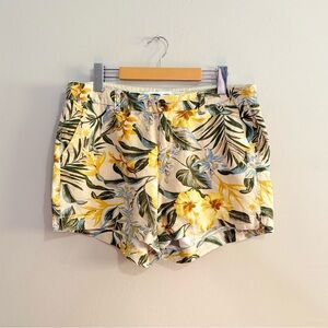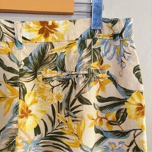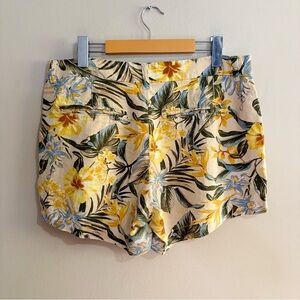 Old Navy Mid-Rise Linen Blend Yellow & Green Floral Shorts 5”