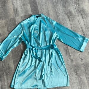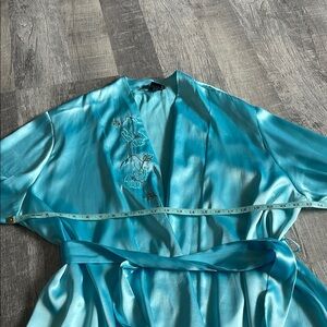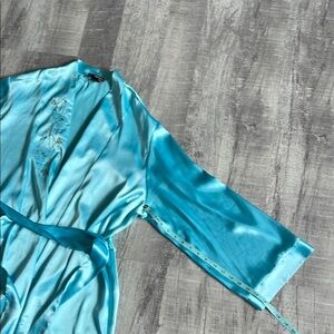 Vintage Halston Silky Blue Robe with Embroidered Detail