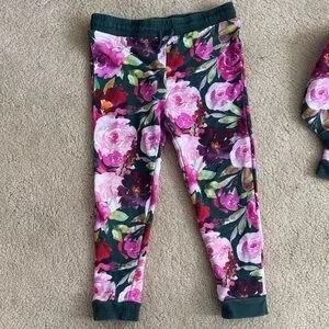 Posh Peanut Vibrant floral long sleeve top and pants set. Features pink and green colors. A couple small blue stains that have not been treated. Size 7.