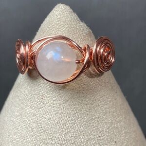This exquisite ring features a Genuine captivating moonstone, elegantly wrapped in Bare Copper wire. Crafted