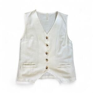 Linen Blend Matching Vest Top And High Waisted Pants Set in Cream size Small