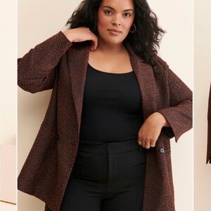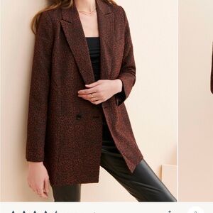 Chic dark brown blazer with subtle pattern. Ideal for a polished look.
