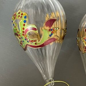 Vintage Clear Glass Hand Blown TEARDROP Ornaments Handpainted Jeweled 🎄