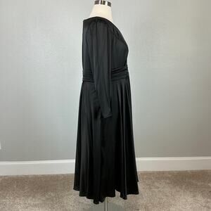 Mac Duggal Satin Long Sleeve Fit and Flare Midi Cocktail Dress Black Size 20W