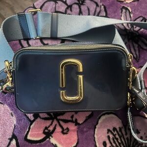 Elegant Marc Jacobs crossbody in navy. Features gold hardware and adjustable strap. Perfect for daily use.