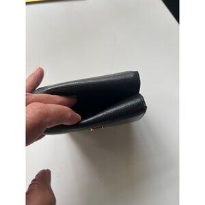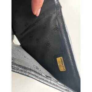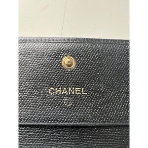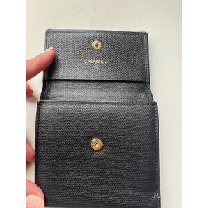 Chanel Black Leather Small Bifold Wallet With Gold Logo Snap Closure
