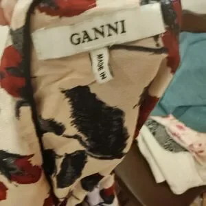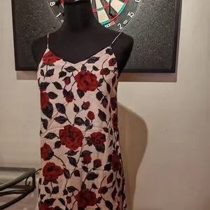 Ganni V-neck slip dress, crafted from 100% silk with a beautiful rose print, perfect for adding a touch of elegance to any outfit. This dress features a flattering V-neckline and a comfortable slip silhouette. It's lightweight and breathable, making it ideal for both casual and dressy occasions.