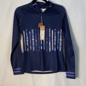 NWT Krimson & Klover baselayer in patter "Upslope Ski" color Indigo. Zipper from chest to hi neck. Brushed inside. 4 way stretch. Odor control. Anti chafe. Size small