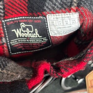 Woolrich Black Leather and Red Wool Women’s Balt Buffalo Plaid Boots Size 8.5 US