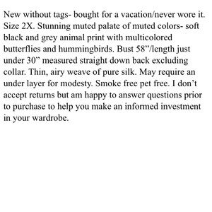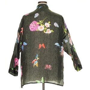 2X 3X Johnny Was blooming silk blouse butterflies hummingbirds 58” bust 30” long