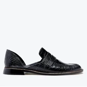 Freda Salvador TASH D'ORSAY MOCCASIN Black Croc-Embossed Loafers