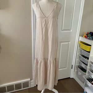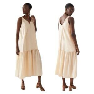 H&M Champagne V-Neck Drop Waist Slip Maxi Women's Dress (Size XS)