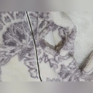 Stylish fleece jacket with floral design. Soft and warm. Perfect for chilly days.