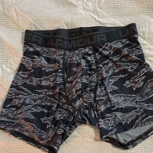 Under Armour Men's Black and Gray Patterned Boxer Briefs