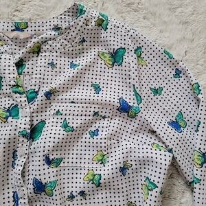 ✨️CL Coral Bay White Black Polka Dot Butterfly Print Blouse Size XL