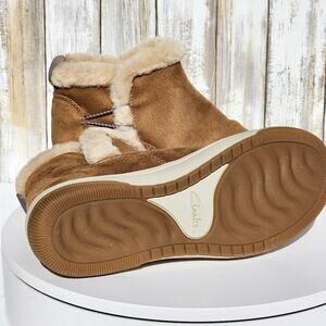 NEW - Clarks Women's Breeze Faux Fur Booties - Size 5 M - Dark Tan/ Brown