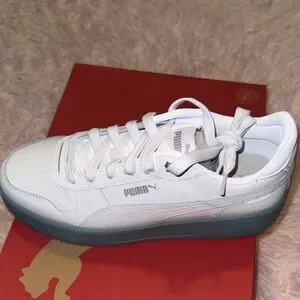 Chic Puma sneakers in white with a teal sole. Ideal for everyday style.