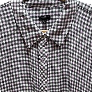 Talbots Gray, White, & Pink Check Plaid Button Down Blouse/Tunic Sz 3X