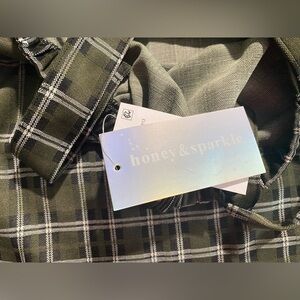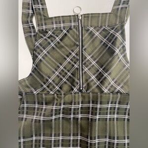 NEW- Womens Honey & Sparkle Strapped Dress - Zip Front- Green Plaid