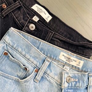 Upgrade your wardrobe with these stylish denim shorts. Two pairs of Abercrombie & Fitch shorts size 27/4. Featuring a classic black and light blue design, these shorts are perfect for any casual outing. Enjoy comfort and style with every wear.