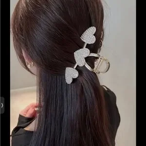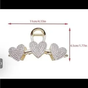 Add a touch of elegance to your look with this stunning gold heart hair clip. Perfect for any occasion. 2 Golden Hair Clip Heart 1 Rhinestone Hair Clip & 1 Pearl Strong Hold Won't Slip Great For Thick Thin Curly Hair Women Girl look in our store for the