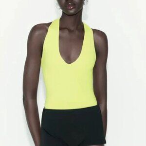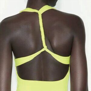 Tags: zara, twisted straps, double layer, neon yellow/green, open back,Summer, Festival, Casual, Sungirls, fitted, tight, soft, stretchy, slim fit, sexy, form fitting, trendy