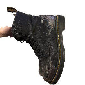 Dr. Martens Womens Sz 7 Black Glitter Flame Boots 1460 Pascal