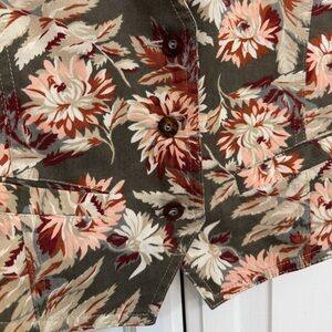 Vintage Izod vest with a striking floral pattern. Ideal for a bold look. Buckle details with buttons and small pockets. Size M