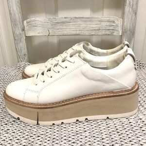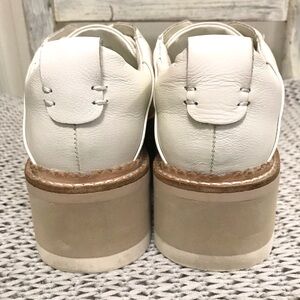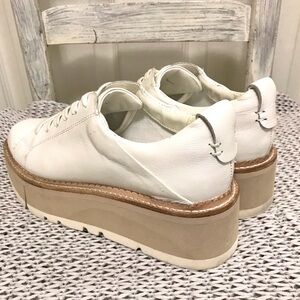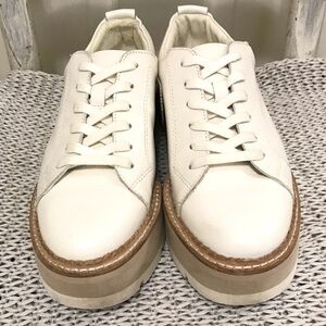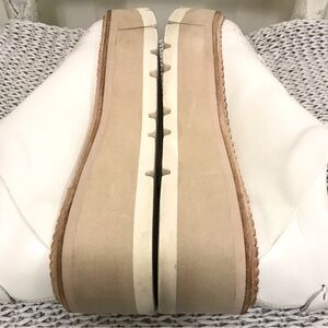 Stylish white platform shoes. Features tan sole. Perfect for casual wear. Re-poshing as I normally wear a size 7, but was hoping I could fit into these 6 1/2’s. No go on that. These run true to size.