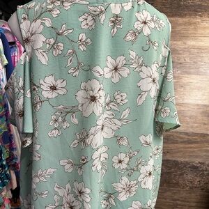 Flower and Feather Floral Cold Shoulder Blouse in Mint Green