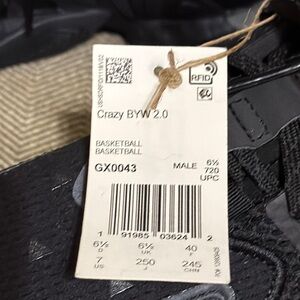 NWT Adidas Crazy BYW 2.0 Basketball Triple Black Sneakers/Shoes GX0043 Size 7