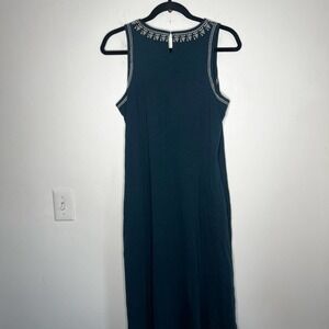 Garnet Hill Embroidered Jewel-Neck Maxi Dress