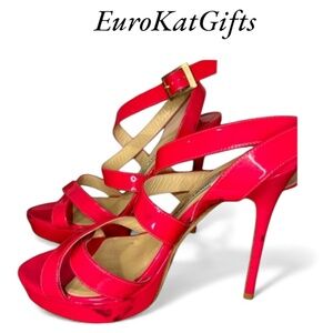 JIMMY CHOO “Louisa" Fuchsia Pink Strappy Platform Sandals Shoes Size 39 8.5M US